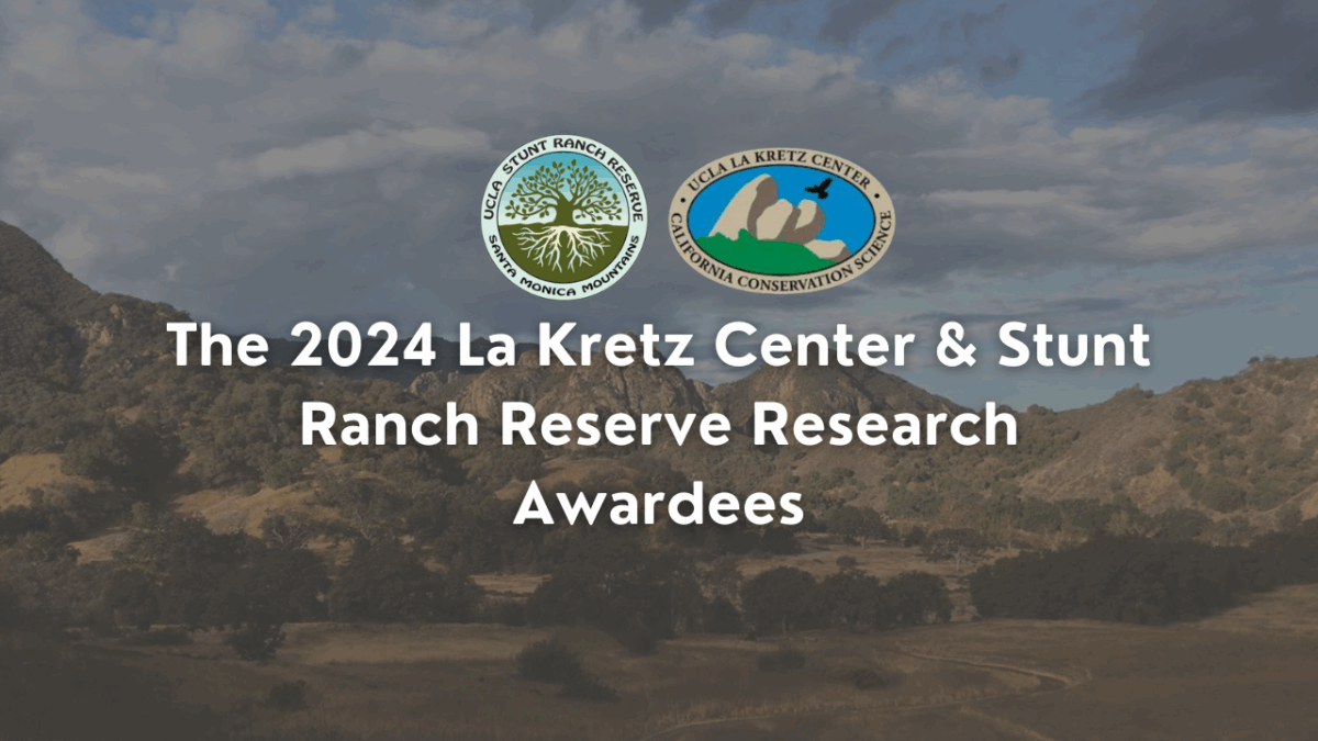 The UCLA La Kretz Center for California Conservation Science and the UC Natural Reserve System Stunt Ranch Santa Monica Mountains Reserve are pleased to announce the 2024 La Kretz Center and Stunt Ranch Reserve Research Awards recipients. These awardees are some of UCLA’s best and brightest undergraduate and graduate students working on a variety of exciting conservation-based projects. Supporting students in their research endeavors is a primary mission for the La Kretz Center and Stunt Ranch, and we are enthusiastic about what this year’s winners will accomplish over the next year!