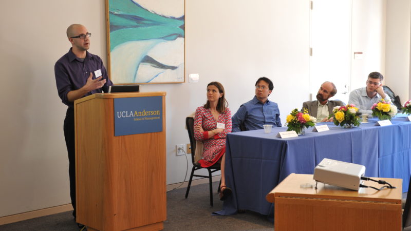 In collaboration with Professor Delmas, Chien-Ming Chen presented his latest research on “frontier” benchmarking, a novel methodology to compare firms’ environmental efficiency. Using a case study on the food and beverage industry, he showed how frontier benchmarking can help firms identify relative performance to main competitors and use this methodology as a tool to improve their environmental and financial performance.