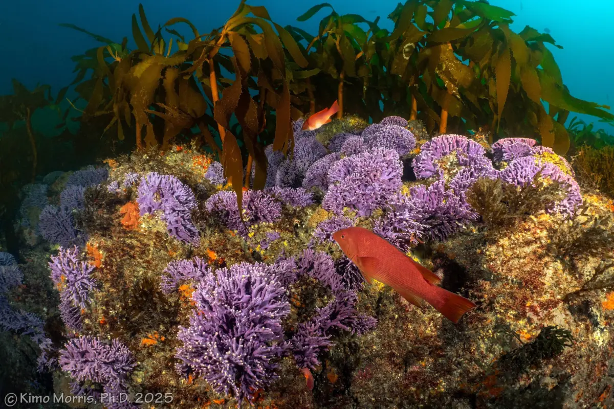 Recently, Olivia Simon, from Robert Eagle’s group, led a field expedition to Farnsworth Bank SMCA, a marine protected area southwest of Catalina Island known for its stunning cold-water coral assemblages. Working with two scientific divers and USC’s Wrigley Marine Science Center, she collected cold-water coral samples, including California’s native and rare Purple Hydrocoral.