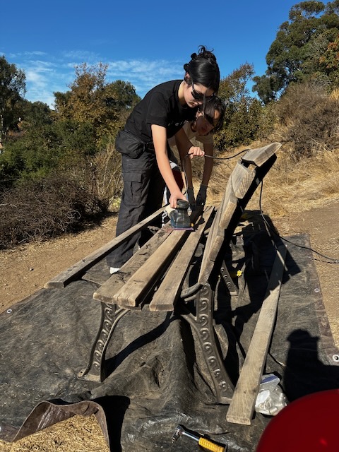 Last year, over 1700 students made visits to Sage Hill for classes, activities, or just to relax in nature. For years there have been only three benches at Sage Hill and there is a need for more places to sit alone or in groups. Luckily, last year four old benches were donated to Sage Hill and, with the help of the Sage Hill restoration team, we applied for and were awarded a small grant from The Green Initiative Fund (TGIF) to repair and repaint these benches.